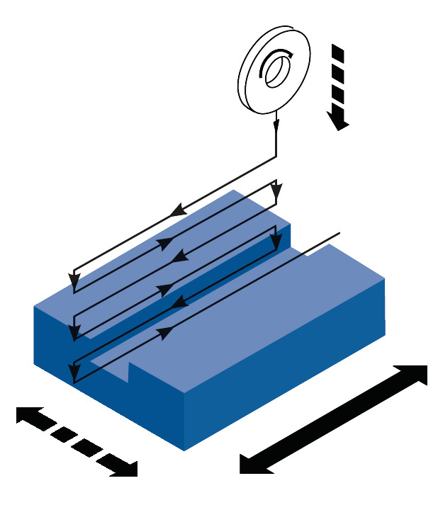 - Počítačovo riadený, programovateľný vertikálny posuv s funkciou rýchloposuvu až k obrobku a spätným chodom