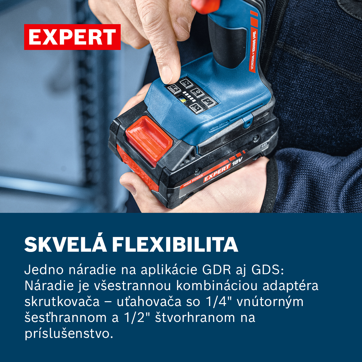 EXPERT EXDX18V-210 je všestranná kombinácia skrutkovača a uťahovača, ktorá umožní rýchlu a jednoduchú výmenu príslušenstva na 1/4" vnútorný šesťhran a 1/2" štvorhran. Vďaka vysokovýkonnému bezuhlíkovému motoru s až 3400 ot/min, uťahovacím momentom 210 Nm a piatimi nastaveniami rýchlosti zvládneš prácu rýchlejšie a s optimálnou kontrolou náradia. Štyri nastaviteľné režimy skrutkovania pomáhajú predchádzať zlomeniu hlavíc skrutiek a poškodeným obrobkom pri chode náradia v smere hodinových ručičiek. Zabraňujú tiež pádu matíc alebo skrutiek pri chode náradia proti smeru hodinových ručičiek. Vstavané LED svetlo osvetlí tmavé pracovné priestory.