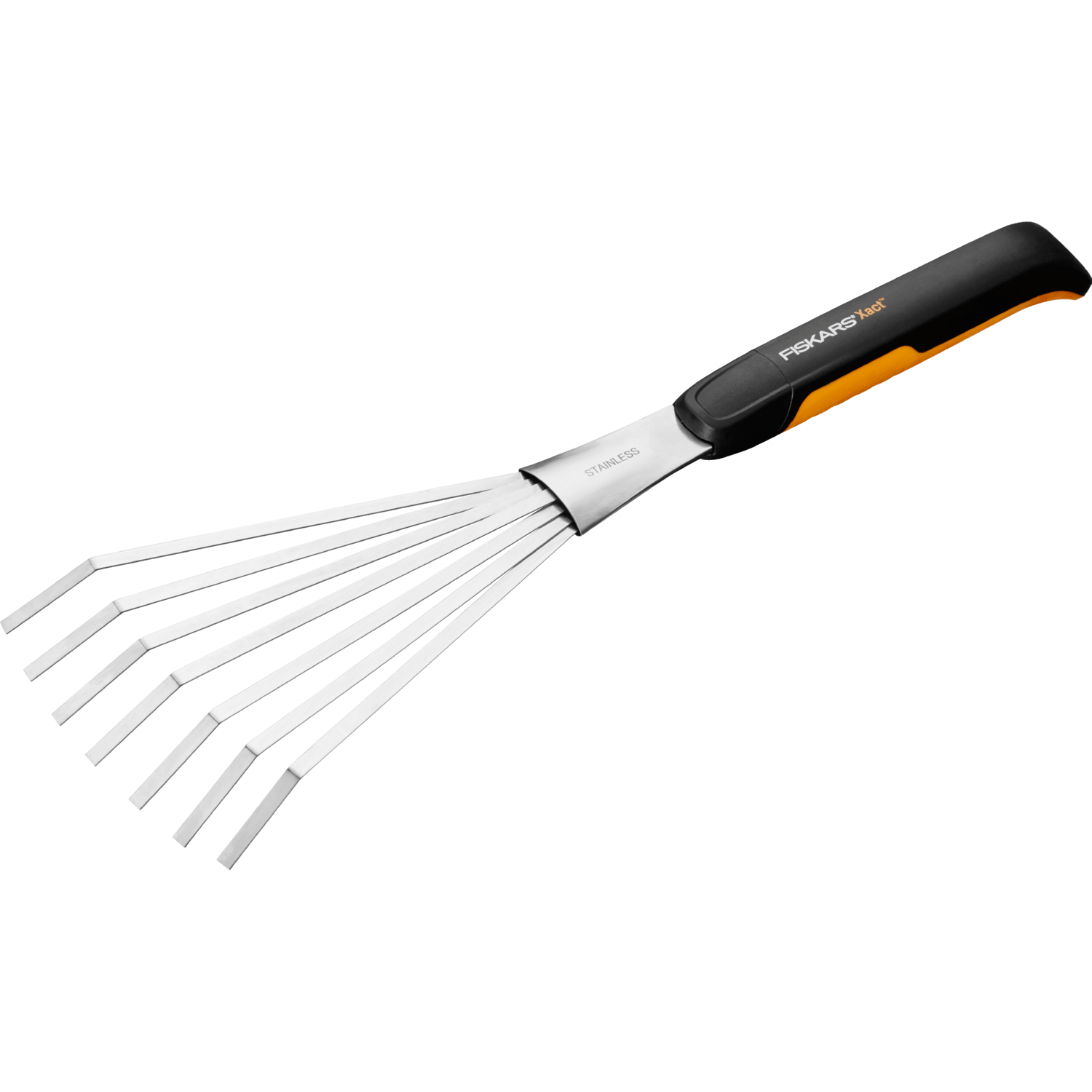 Ručné hrable Xact™ sú vysoko precíznym nástrojom navrhnutým pre detailnú údržbu záhradných plôch. Ich vejárovitý tvar prstov je ideálny na hrabanie a čistenie v malých záhonoch, skalkách a na iných ťažko dostupných miestach, kde je potrebná jemná manipulácia. Dokonale spracovaná hlava z nehrdzavejúcej ocele so 7 prstami poskytuje maximálnu presnosť ovládania, vďaka čomu môžete efektívne odstraňovať nečistoty bez poškodenia okolitých rastlín.