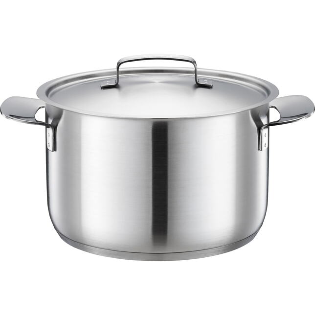 Hrniec s pokrievkou s objemom 5 litrov je ideálny na varenie väčšieho množstva jedla. Odolná konštrukcia z nepotaženej nehrdzavejúcej ocele s 90 % podielom recyklátu zaručuje udržateľnosť a kvalitu. Vnútorná stupnica uľahčuje prácu v kuchyni a nerezové držadlá spolu s pokrievkou s parným ventilom zvyšujú bezpečnosť pri manipulácii.
