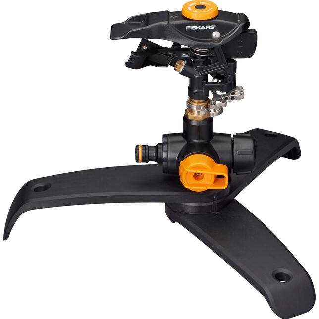 Zavlažovač je osadený na odolnej trojnohej základni, ktorá je ideálna pre tvrdú zeminu a navyše obsahuje praktický závesný otvor na uskladnenie. Zariadenie dokáže zavlažovať plochu až do priemeru 26 metrov. Systém je plne kompatibilný so súčiastkami iných značiek vďaka univerzálnemu pripojeniu.