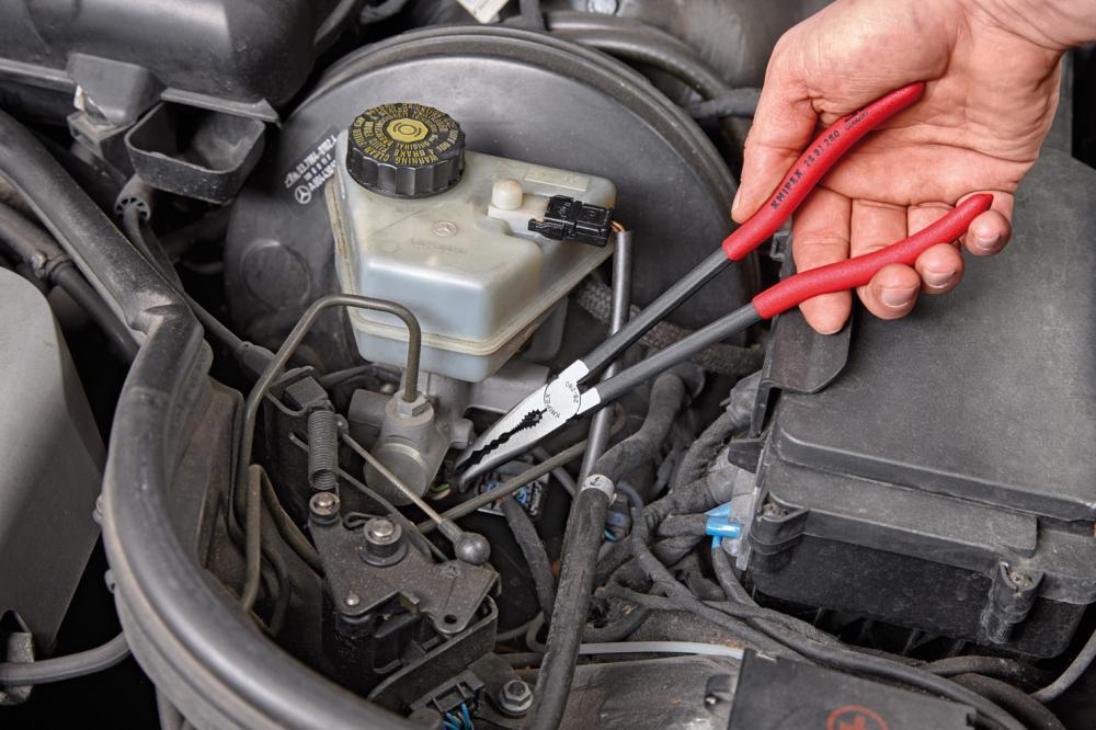 Montážní kleště, se zalomenými čelistmi Provedení: DIN ISO 5745. Ze speciální nástrojové oceli, kalené a popouštěné v oleji. Hlava leštěná, polokulaté čelisti, ozubené úchopové plochy s frézovanými, hladkými drážkami a ozubenou rýhou k uchopení kulatých dílů. Rukojeti s plastovými návleky. Použití: Pro uchopovací, seřizovací a montážní práce na těžko přístupných místech, např. v motorech, při výrobě strojů a při montáži. Hersteller: KNIPEX-Werk C. Gustav Putsch KG, Oberkamper Str. 13, 42349 Wuppertal, DE, +4920247940, info@knipex.de