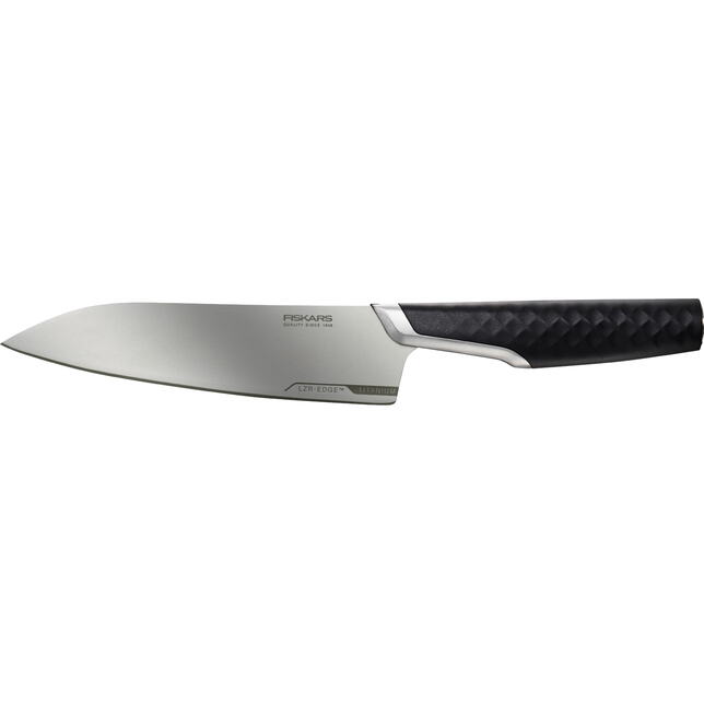 Nôž kuchársky stredne veľký so 16 cm čepeľou je všestranný pomocník so silnou čepeľou určený na rozmanité kuchynské úlohy. Titánová čepeľ prináša výhodu nízkej hmotnosti a precízneho ovládania. Implementácia technológie LZR-EDGE™ zabezpečuje dlhotrvajúcu ostrosť, ktorá prekonáva štandardné nože až štvornásobne. Pohodlie pri práci zvyšuje ergonomická rukoväť vybavená 3D textúrou pre stabilný úchop. Pri ostrení noža sa odporúča použiť keramický brúsny kameň Whetstone.