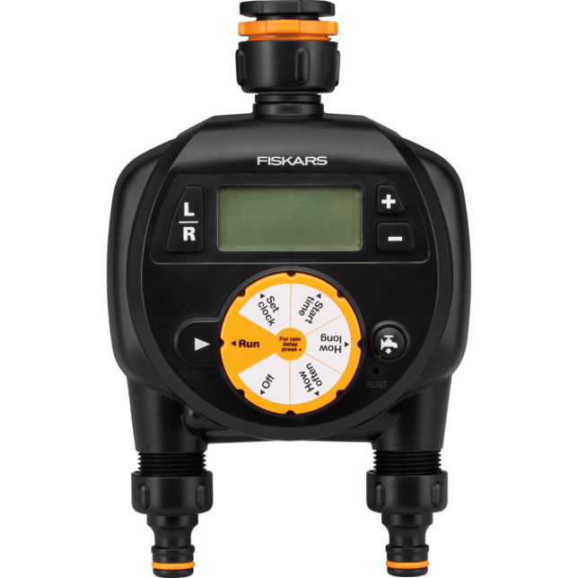 Počítač zavlažovací s dvoma výstupmi umožňuje plne automatizované a efektívne riadenie závlahy. Hlavnou výhodou tohto modelu je možnosť nezávislého naprogramovania každého výstupu, kde možno nastaviť čas zahájenia, dobu trvania, frekvenciu aj prípadné oneskorenie zavlažovania. Počítač navyše ponúka funkciu okamžitého ručného zavlažovania bez narušenia nastavených cyklov.