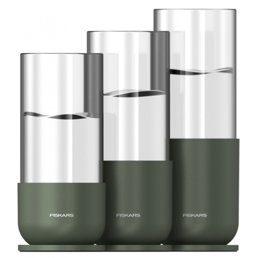 Počet kusov v sade: 3 sklenené nádoby + kovový stojan