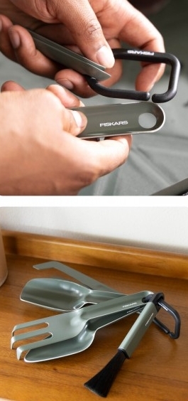 Súčasťou setu je praktický organizér, ktorý udržuje všetky nástroje pokope, čím eliminuje riziko ich straty a uľahčuje prenášanie. Celá zostava disponuje skladacím dizajnom, ktorý šetrí drahocenné miesto pri skladovaní v domácnosti alebo v malej záhradnej skrinke. S hmotnosťou len 0,59 kg ide o ľahký a zároveň profesionálne pôsobiaci komplet pre každého mestského aj klasického záhradkára.