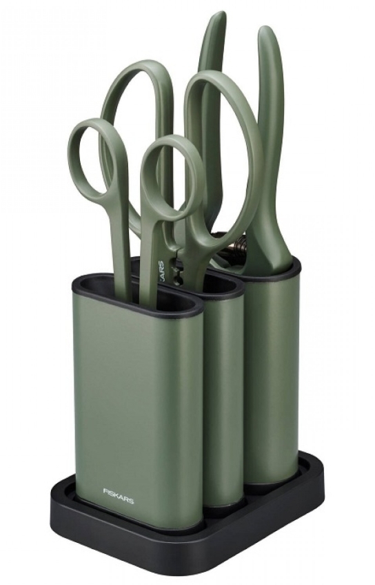 Jedinečným prvkom tejto sady je systém úložných puzdier. Každé nožnice majú svoje vlastné štýlové voľne stojace puzdro, ktoré môže stáť samostatne, alebo sa všetky tri puzdrá dajú vložiť do spoločného podstavca, čím vytvoria organizovaný a dizajnmi atraktívny set na vašom pracovnom stole či poličke.