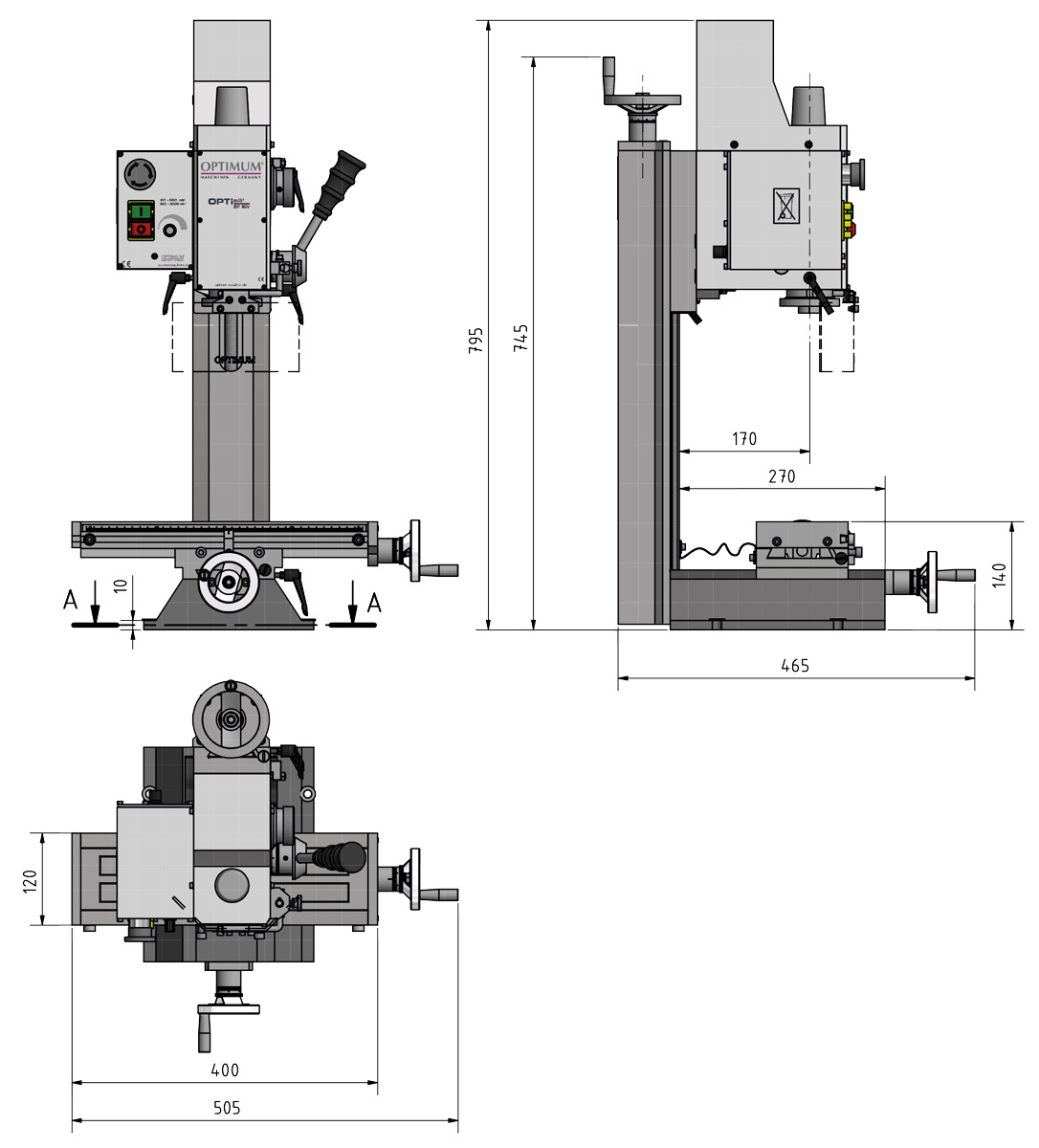 - Frézovacia hlava sklopná o ±90° umožňuje frézovanie a vŕtanie pod rôznym uhlom