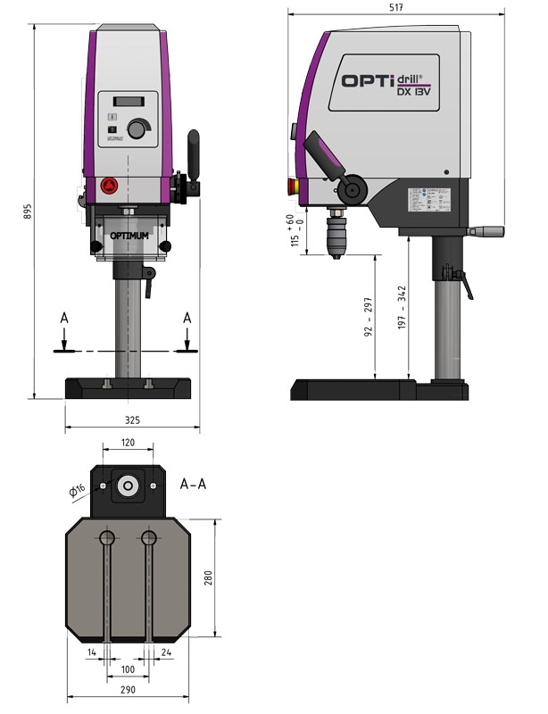- Max. vzdialenosť vretena a základne: 92 – 297 mm